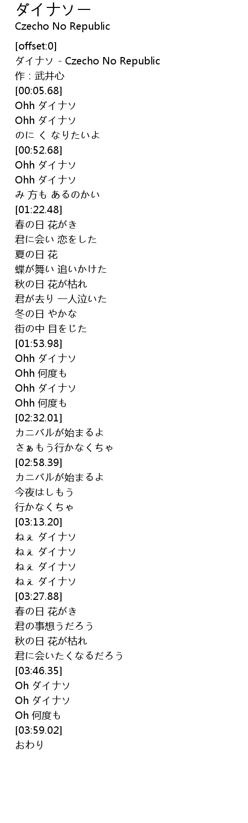 | [00:00.62] | ダイナソ - Czecho No Republic |