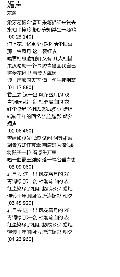| [03:11.370] | 君且去 这一出 风花雪月的 戏 |