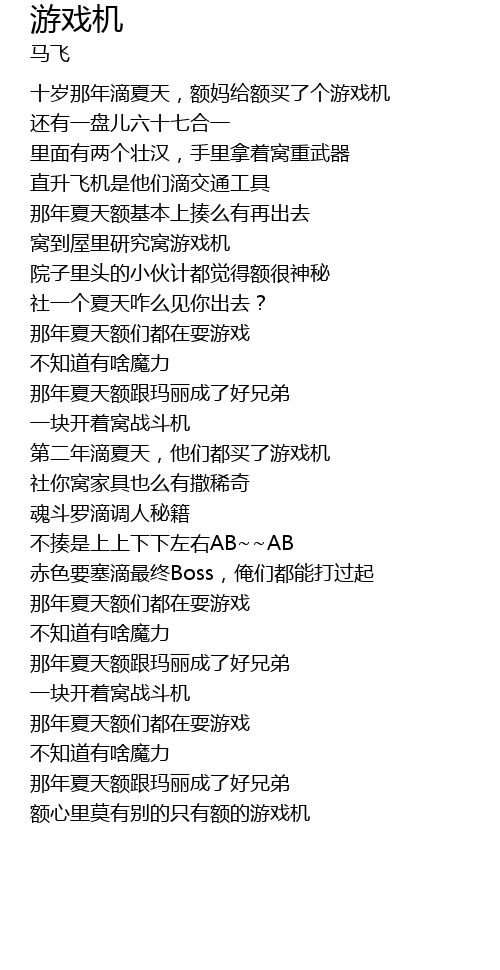 | [00:30.810] | shi sui na nian di xia tian, e ma gei e mai le ge you xi ji |