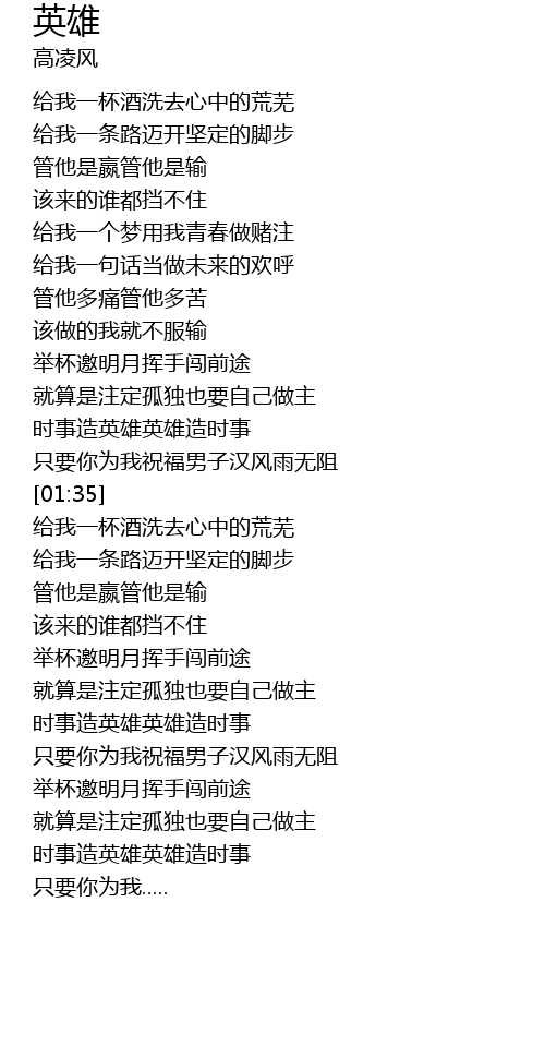 | [01:40] | 给我一杯酒洗去心中的荒芜 |