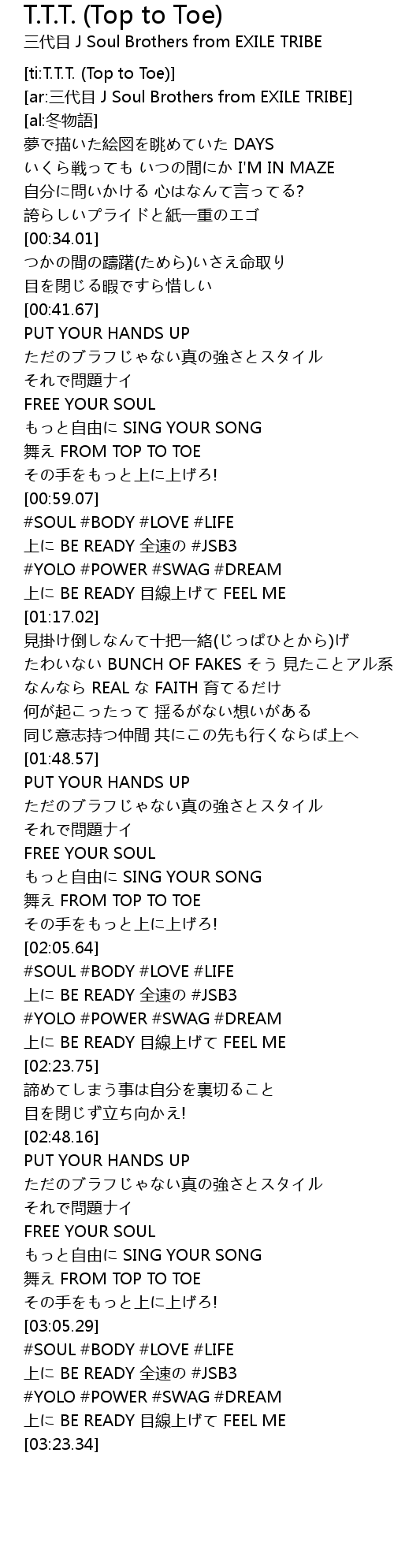 | [ti:T.T.T. (Top to Toe)] | |