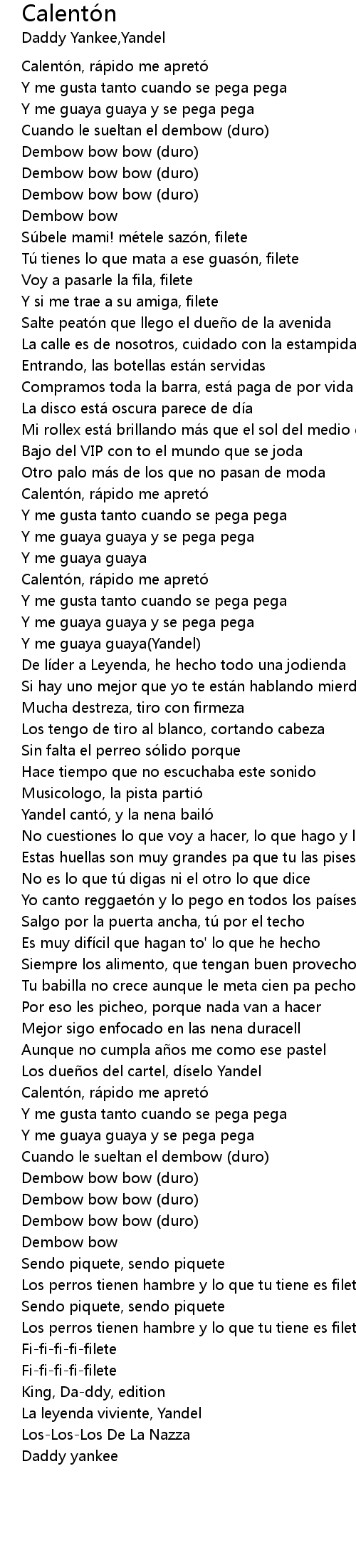 | [00:54.25] | Calentó n, rá pido me apretó |