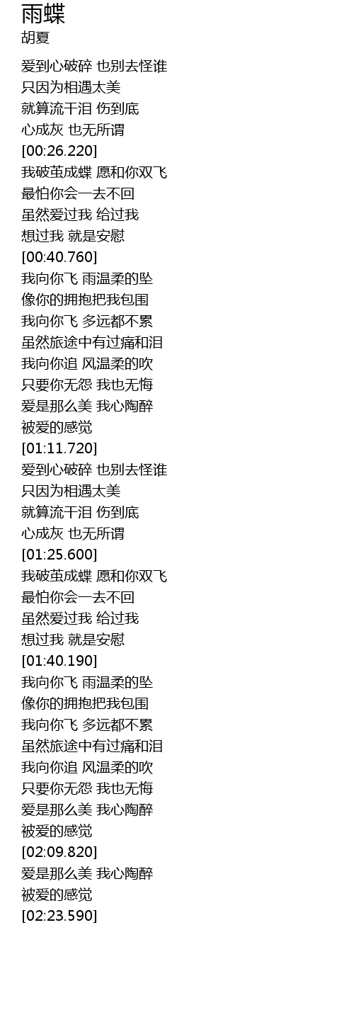 | [00:28.020] | 我破茧成蝶 愿和你双飞 |