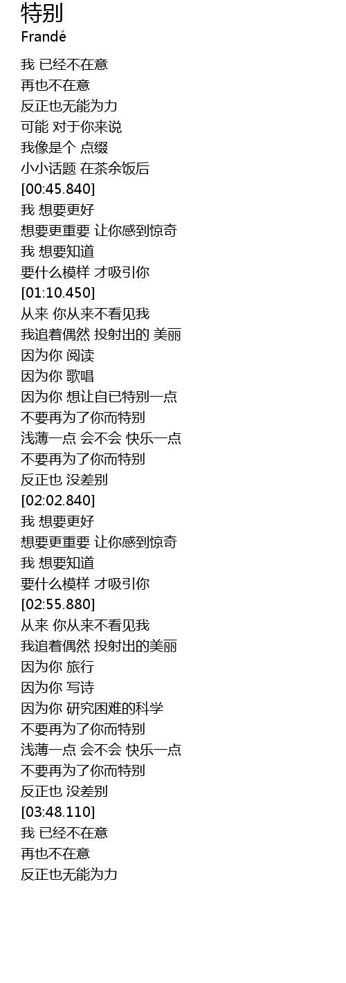 | [01:31.0] | 因为你 想让自已特别一点 |