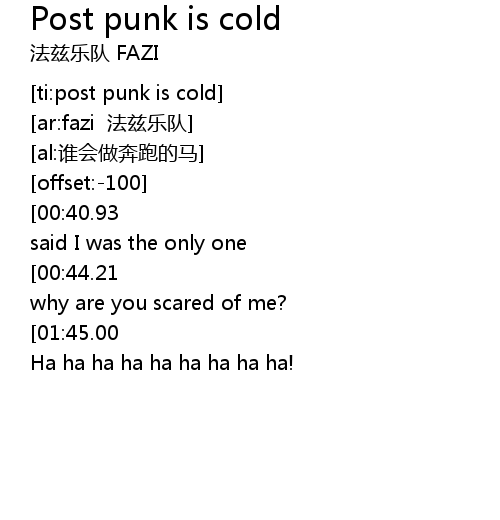 | [00:58.53][01:45.00] | Post punki is cold cold cold |