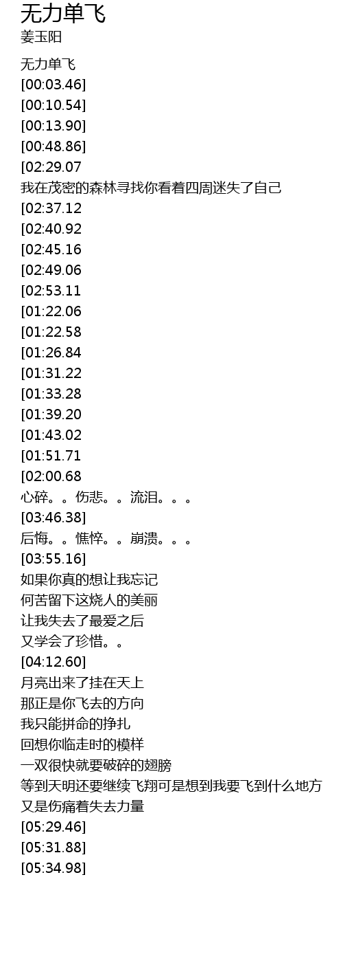 | [03:23.00][01:43.02] | děng dào tiān míng hái yào jì xù fēi xiáng kě shì xiǎng dào wǒ yào fēi dào shén me dì fang |