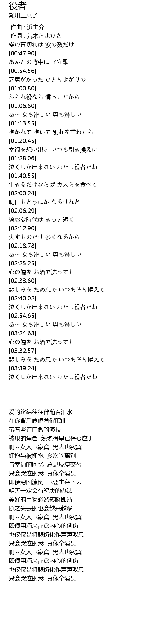 | [03:39.90] | 泣くしか出来ない わたし役者だね |