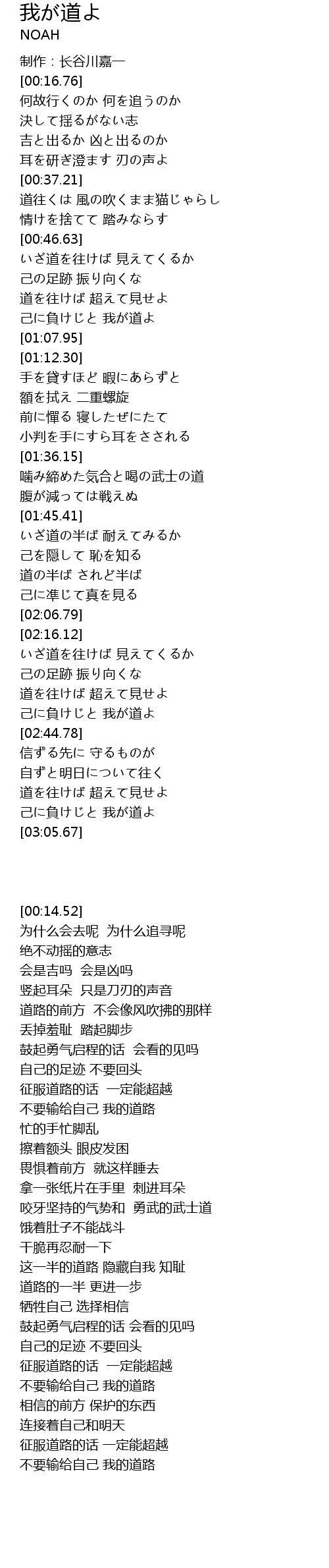 | [00:57.52] | 道を往けば 超えて見せよ |