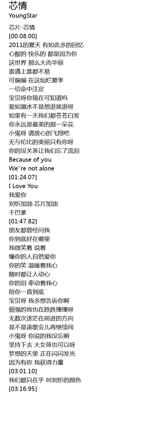 | [01:42.14] | 刘忻加油 芯片加油 |