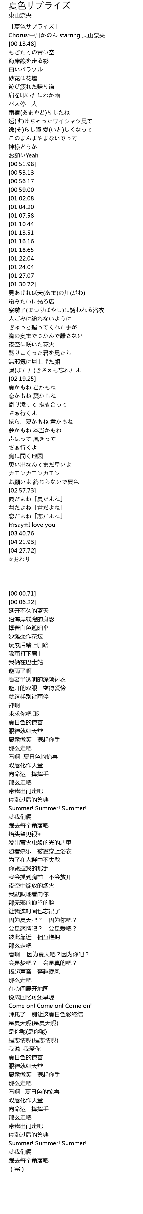 | [00:00.71] | 「夏色サプライズ」 |
