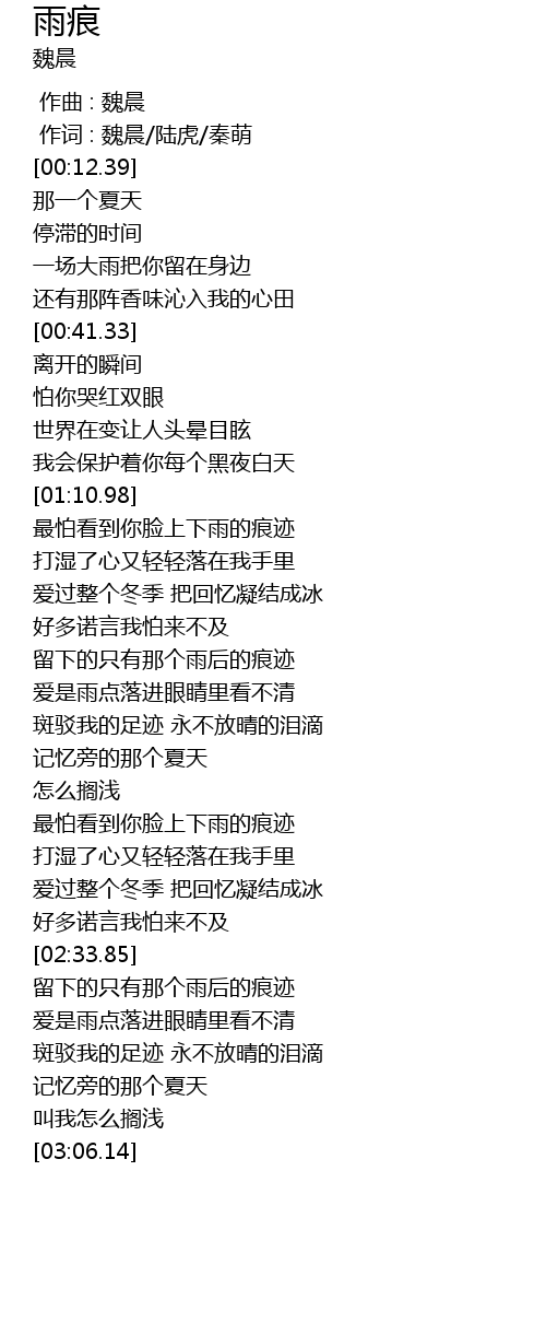 | [00:00.00] | 作曲 : 魏晨 |