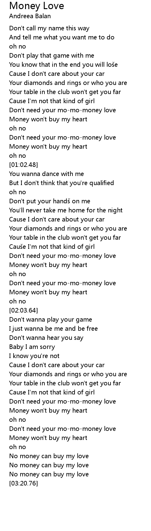 | [00:46.46] | Don't need your mo-mo-money love |