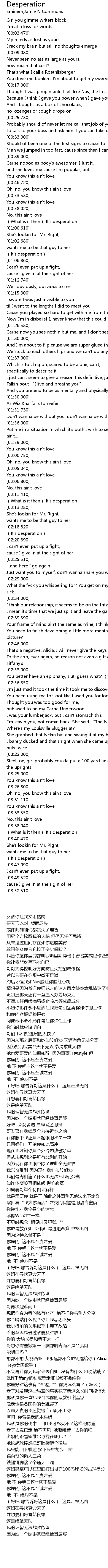 | [00:59.510] | What is it then It' s desperation |