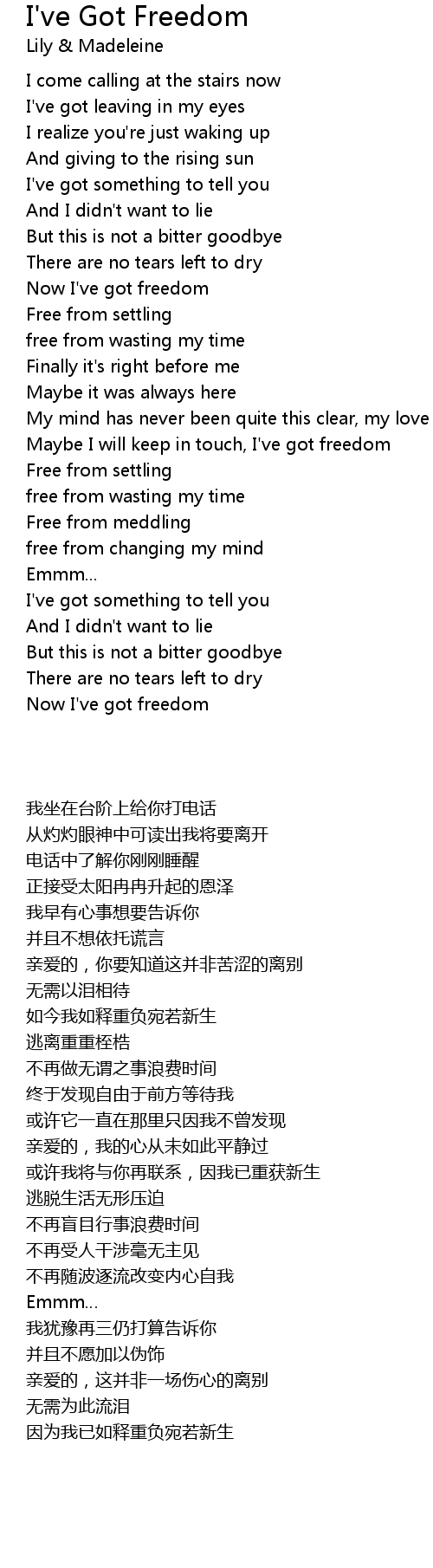 Now I've got freedom |