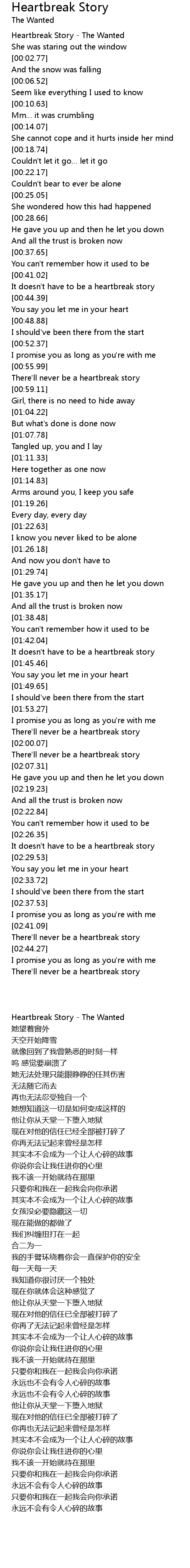 | [00:00.33] | Heartbreak Story - The Wanted |