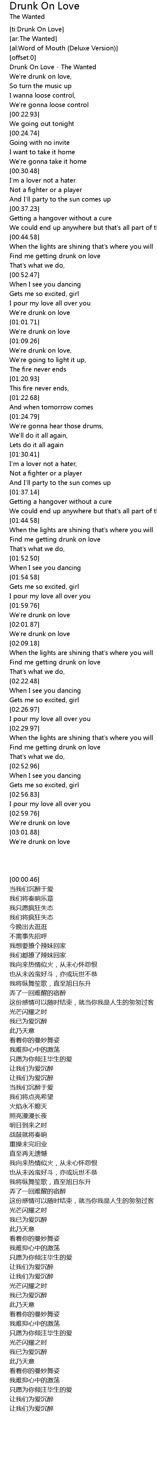 [ti:Drunk On Love] |