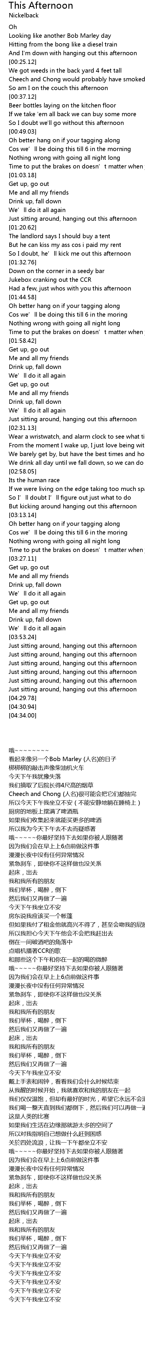| [01:15.96] | Just sitting around, hanging out this afternoon |