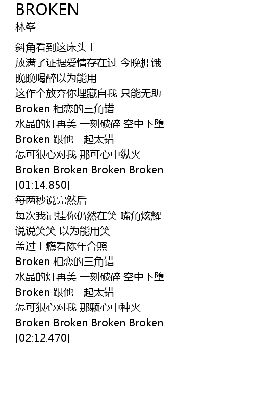 | [01:51.210] | Broken Broken Broken Broken |