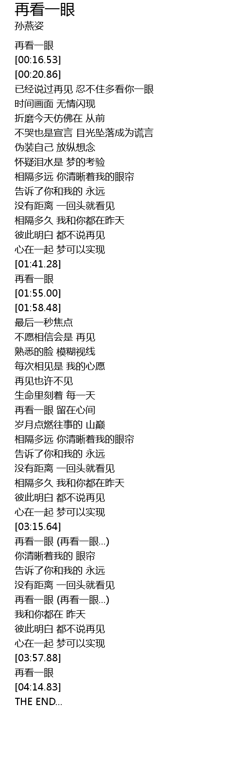| [03:37.30] | 再看一眼 (再看一眼...) |