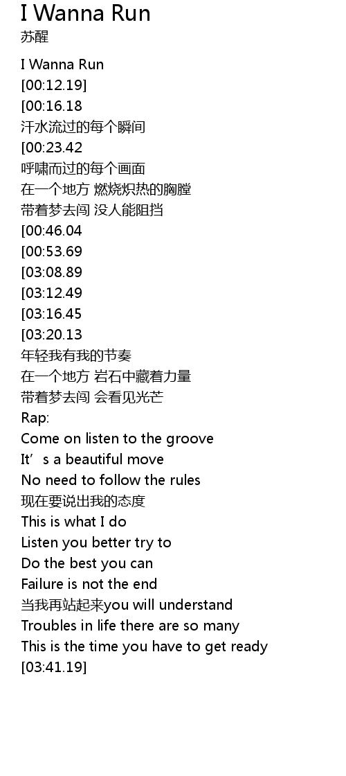 | [01:54.58][00:46.04] | I Wanna Run 去奔跑 穿越人潮 |
