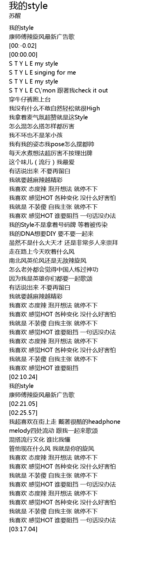 | [00:-0.05] | 康师傅辣旋风最新广告歌 |