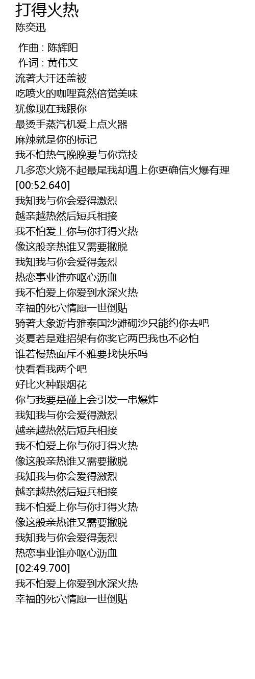 | [02:38.150] | 我不怕爱上你与你打得火热 |