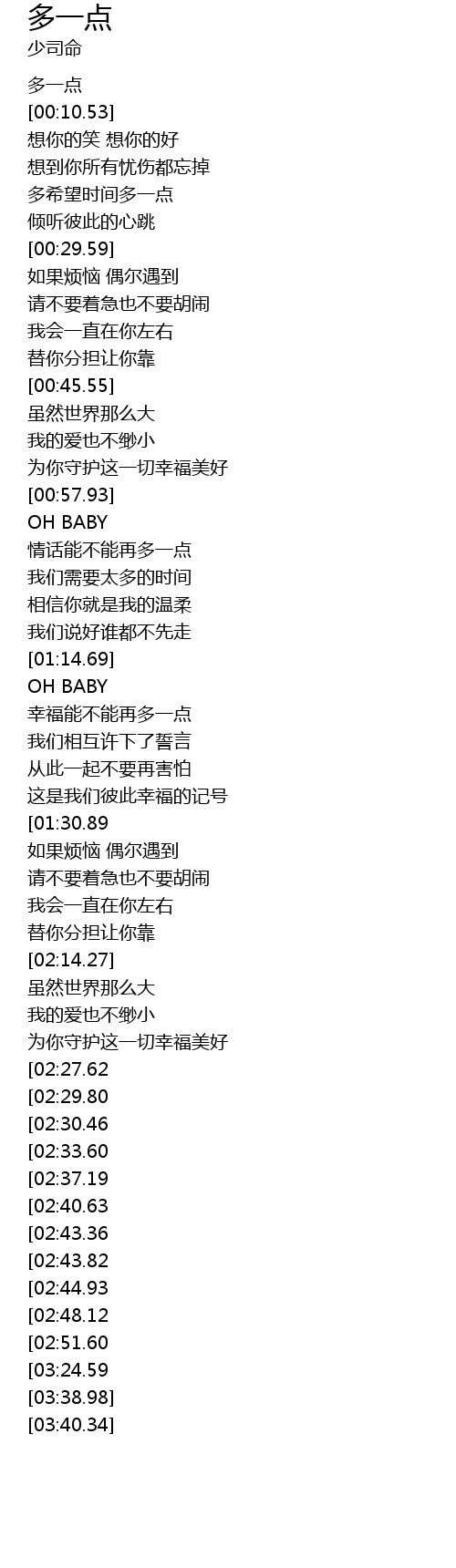 | [02:59.56][02:29.80] | OH BABY |
