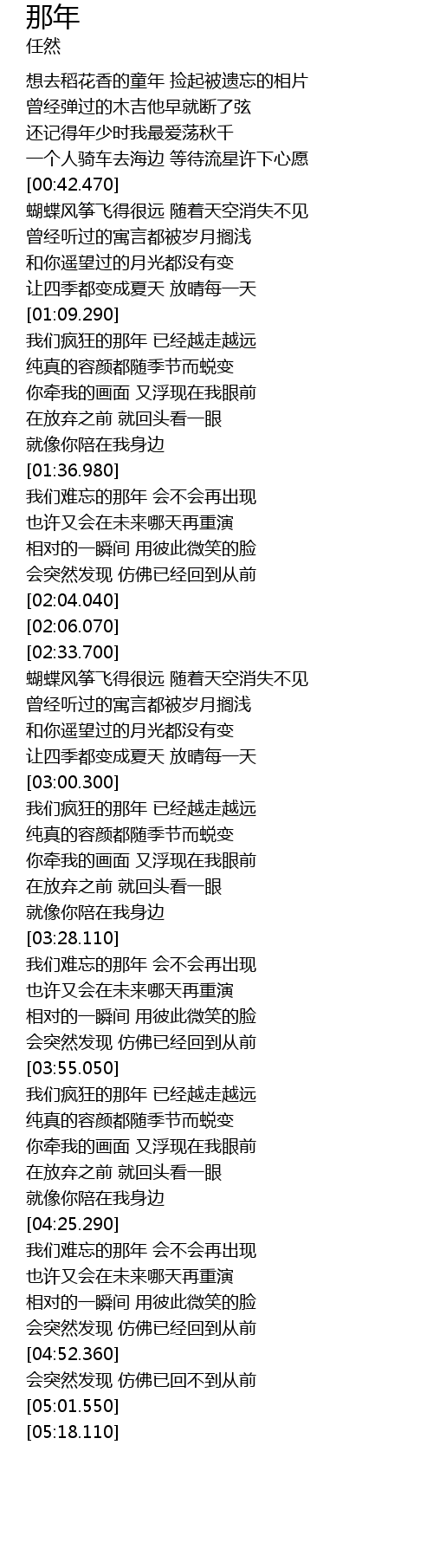 | [01:37.290] | 我们难忘的那年 会不会再出现 |