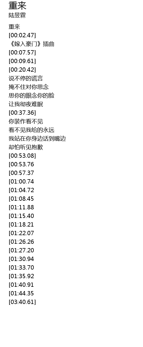 | [03:07.91][01:40.91] | 能不能重来过 |