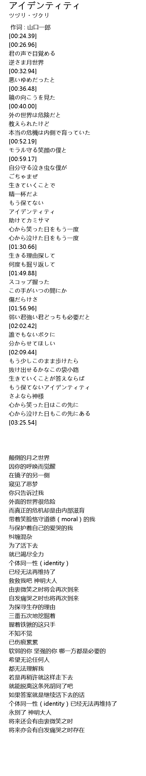 | [01:24.38] | 心から泣けた日をもう一度 |