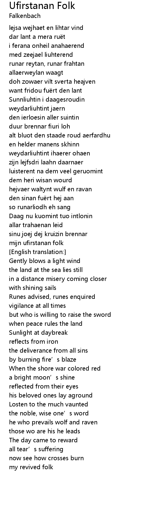 | Song | Ufirstanan Folk |