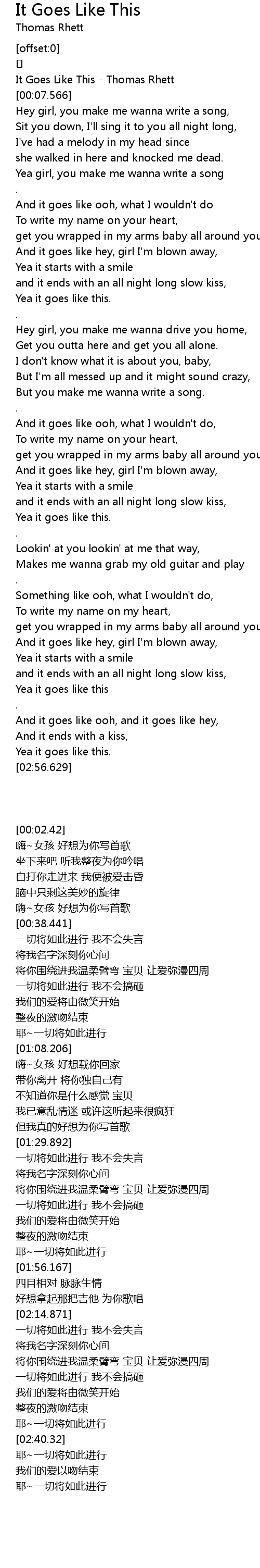 | [00:02.42] | It Goes Like This Thomas Rhett |