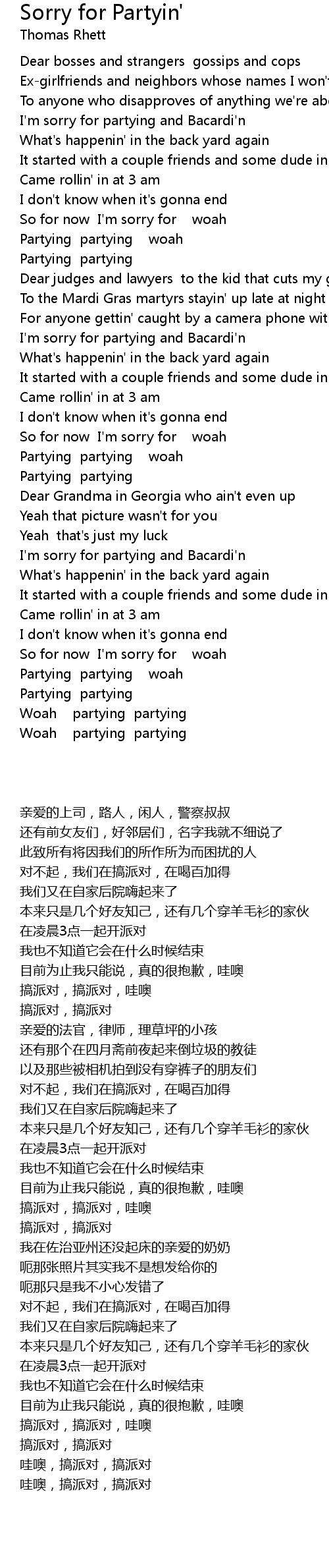 I'm sorry for partying and Bacardi'n |