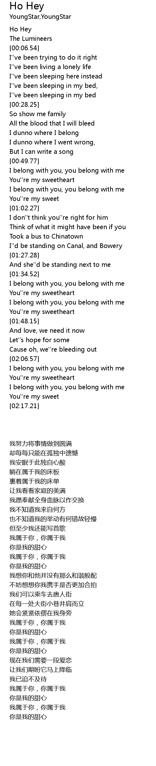 | [00:01.50] | Ho Hey |