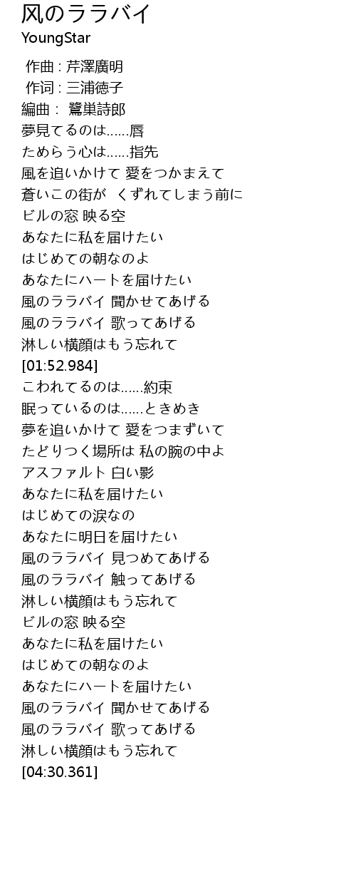 | [04:12.328] | 風のララバイ 歌ってあげる |