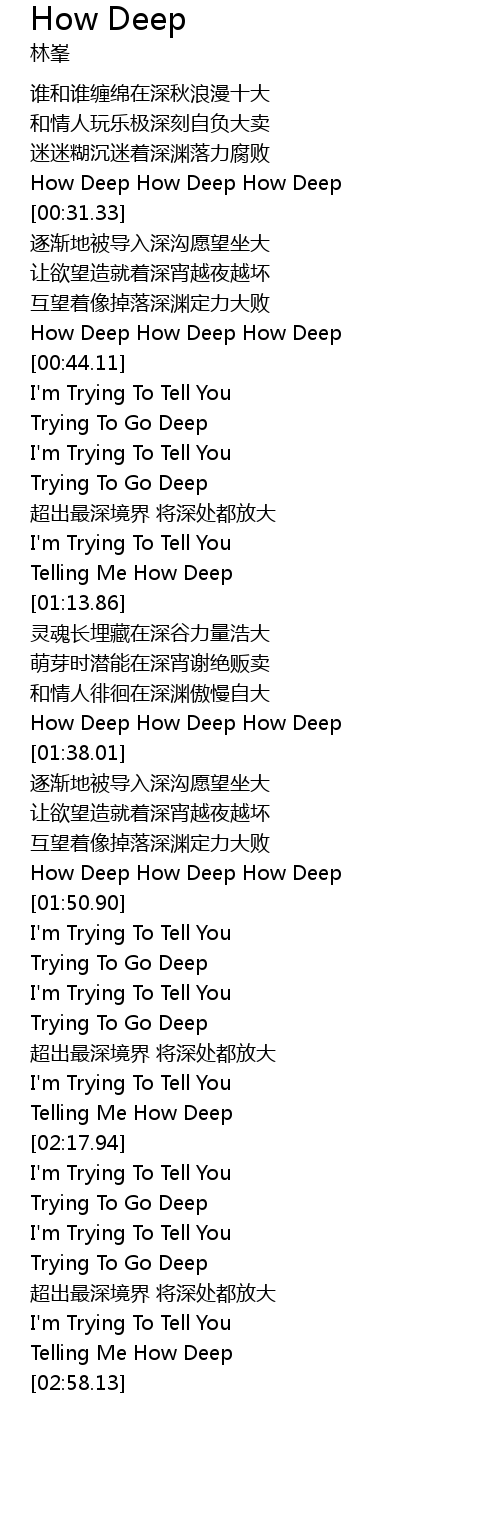 | [01:35.80] | How Deep How Deep How Deep |