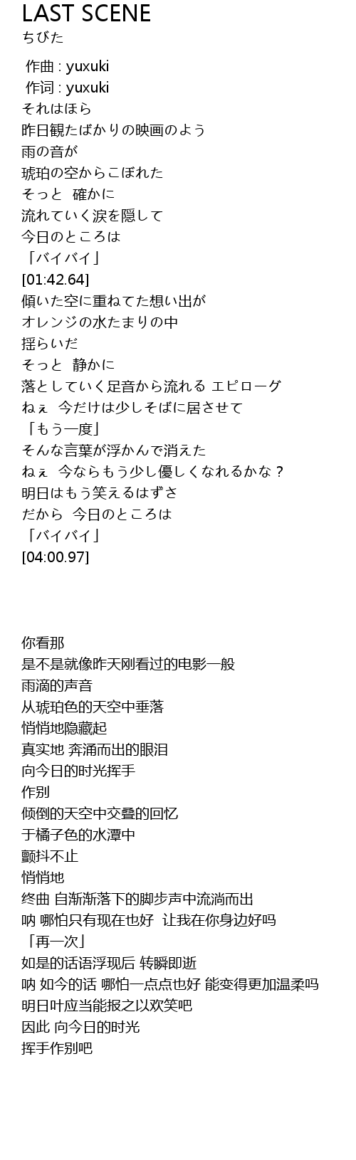 | [00:01.00] | 作词 : yuxuki |