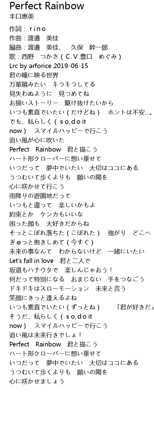 | [03:35.680] | Perfect Rainbow 君と描こう |