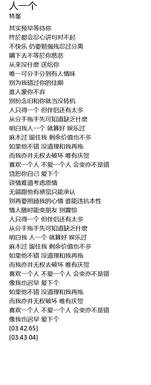 | [02:18.78] | 人只得一个 但伴侣还有太多 |