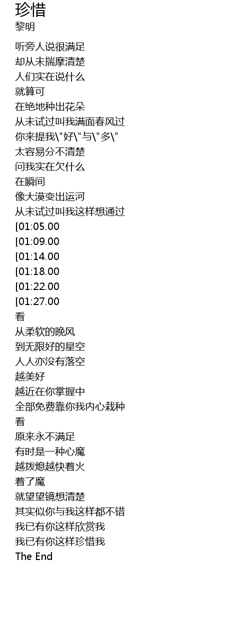 | [02:45.00][01:27.00] | 学会珍惜就够多 |