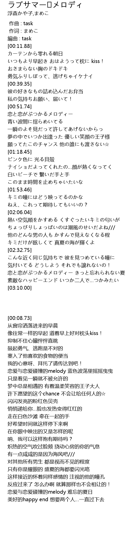 | [02:55.80] | 恋と恋がぶつかるメロディー きっと忘れられない夏 |