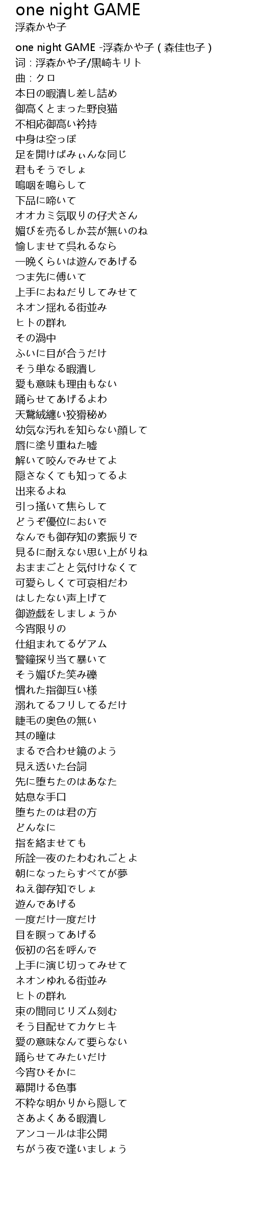 | [00:00.00] | one night GAME -浮森かや子(森佳也子) |