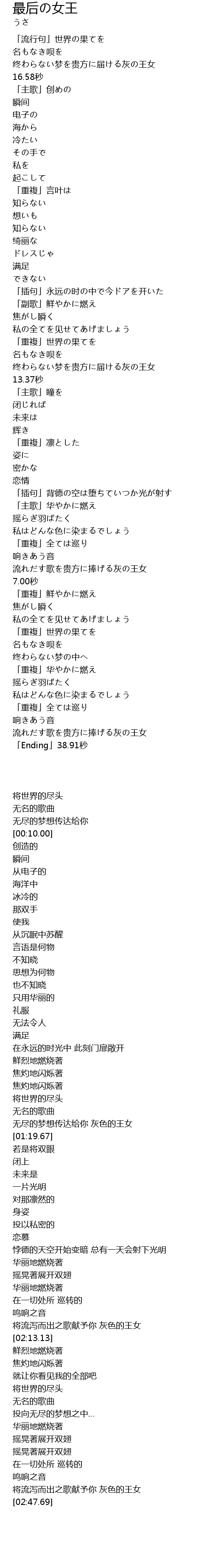 | [01:15.30] | 终わらない梦を贵方に届ける灰の王女 |