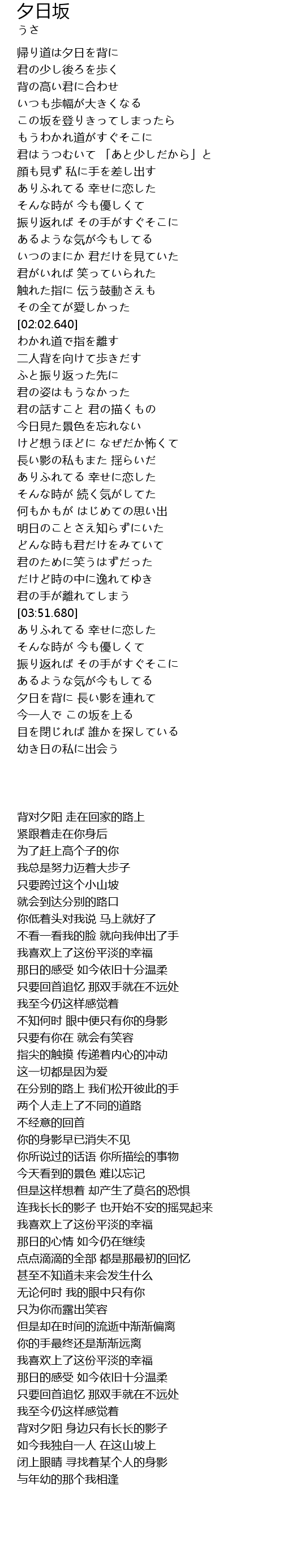 | [04:38.770] | 夕日を背に 長い影を連れて |