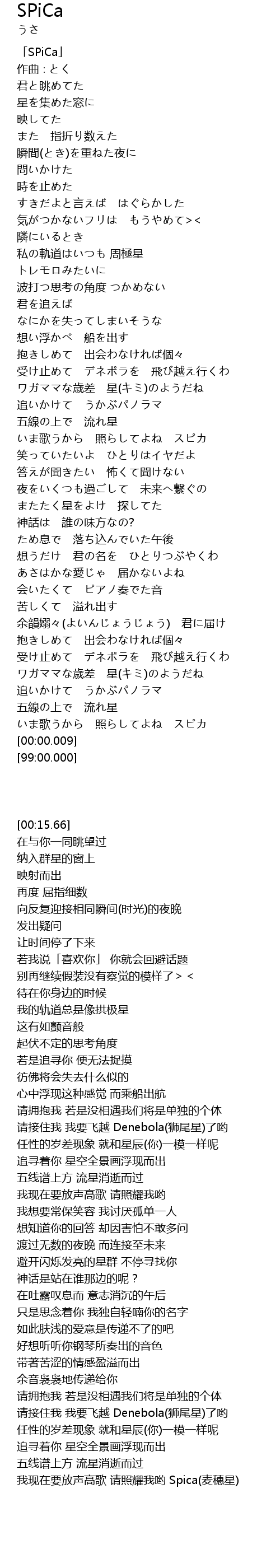 いま歌うから 照らしてよね スピカ |
