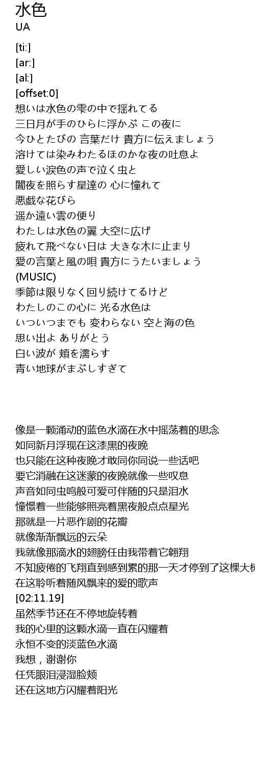 | [02:43.44] | わたしのこの心に 光る水色は |