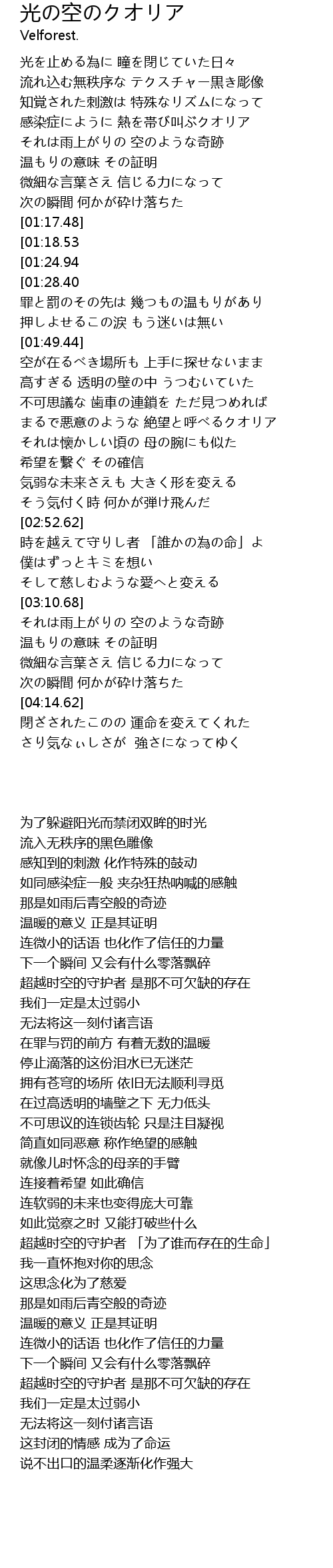 | [02:19.29] | まるで悪意のような 絶望と呼べるクオリア |