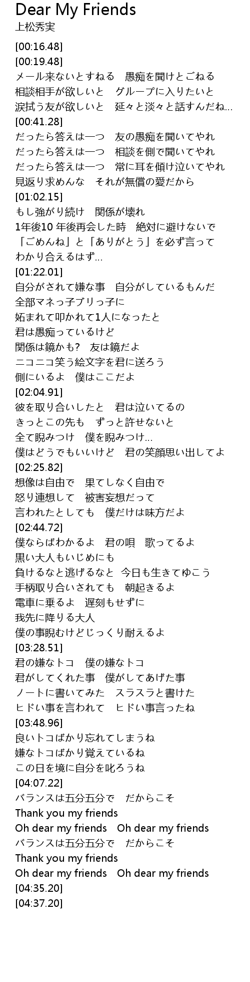 | [04:27.44] | Thank you my friends |