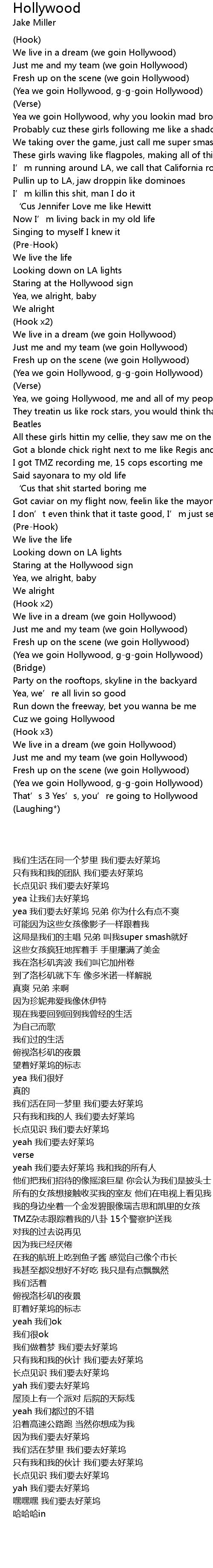 | [00:09.25] | (Yea we goin Hollywood, g-g-goin Hollywood) |
