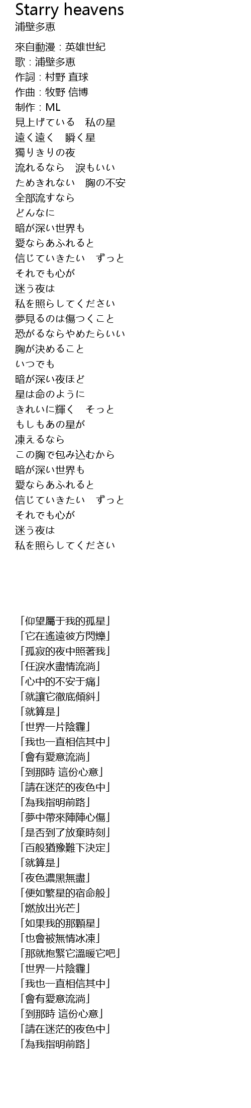 | [00:34.20] | 遠く遠く 瞬く星 |
